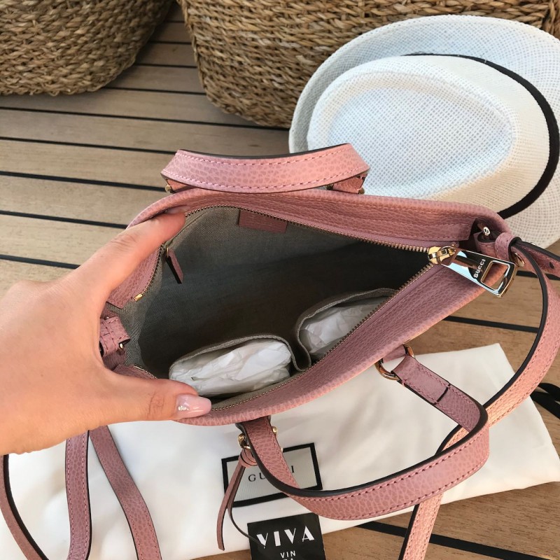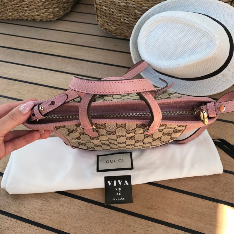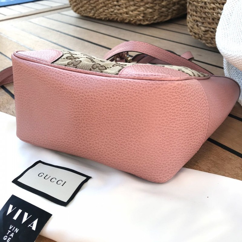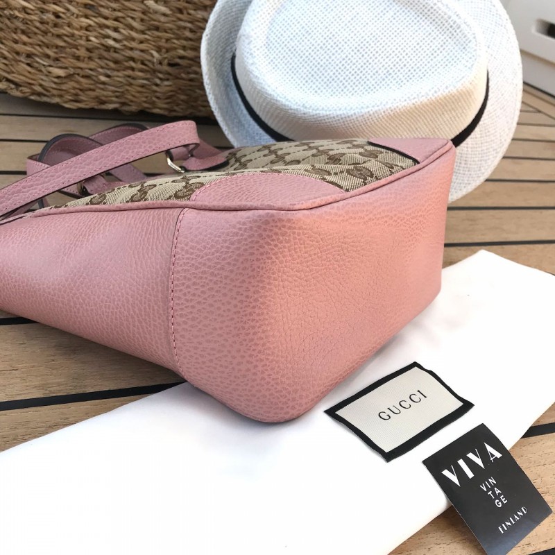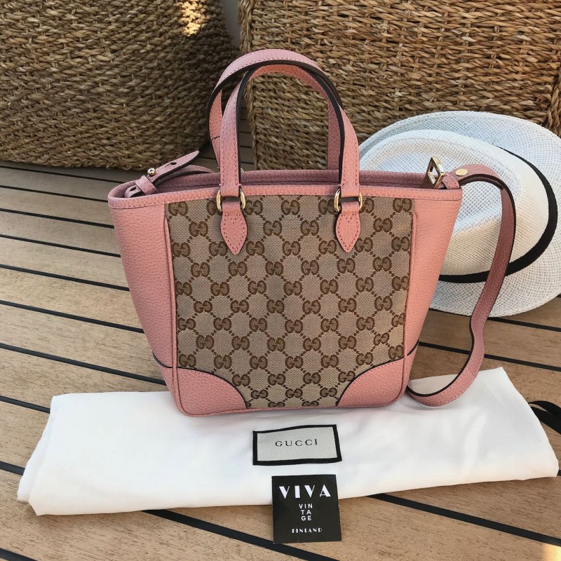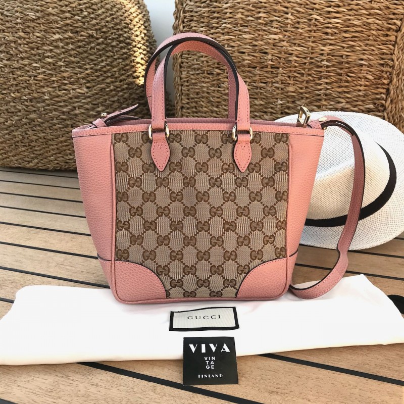 Gucci olkalaukku Small Bree Tote in Monogram canvas and baby pink leather with light gold-tone metal hardware