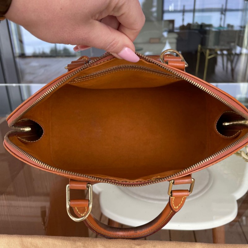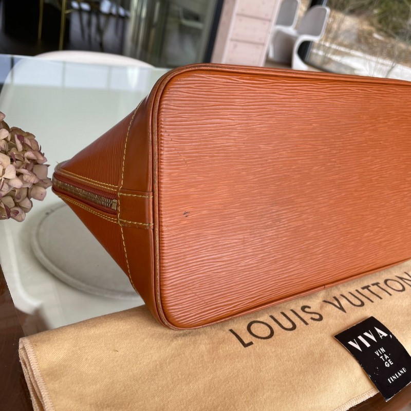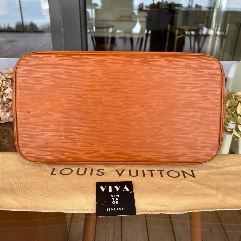 Hyvässä vintage-kunnossa, kantokahvoissa tummentumaa, nahassa muutamia käyttönaarmuja, pohjan nurkissa käyttökulumaa