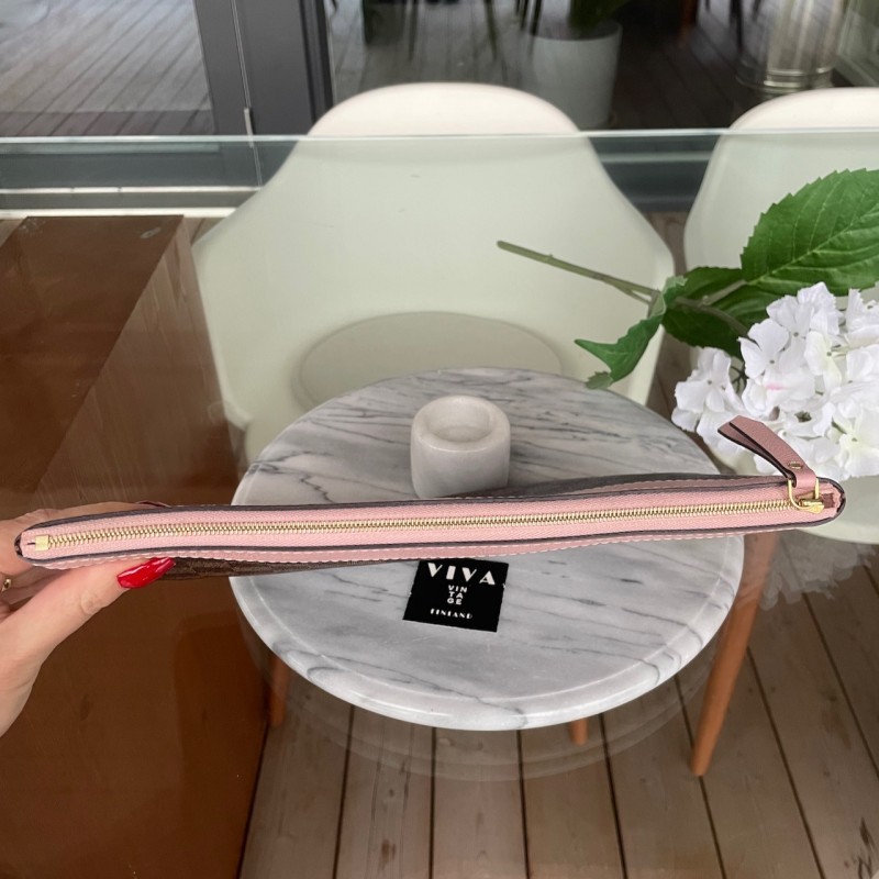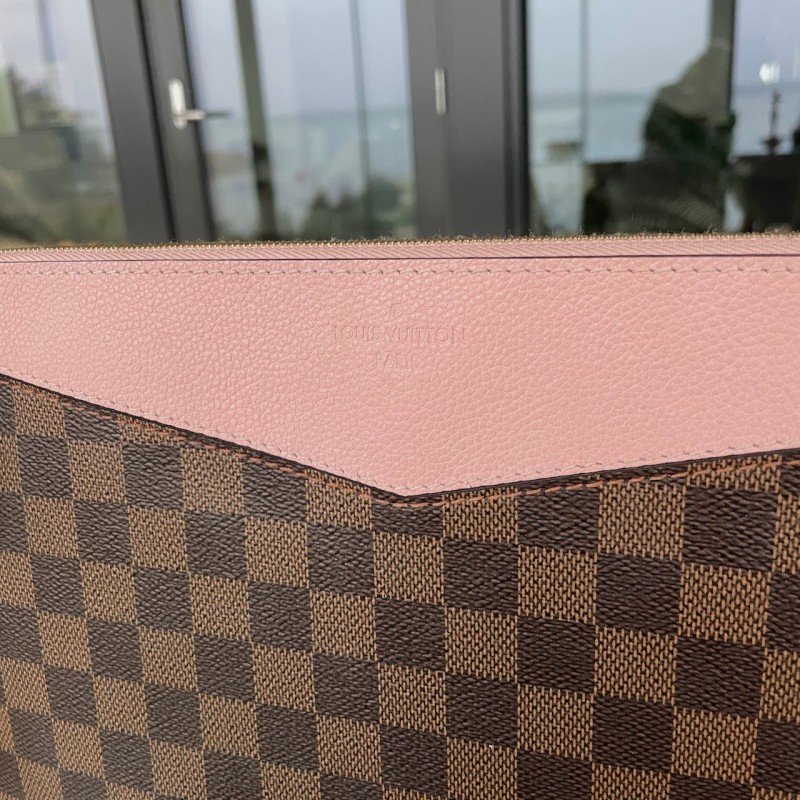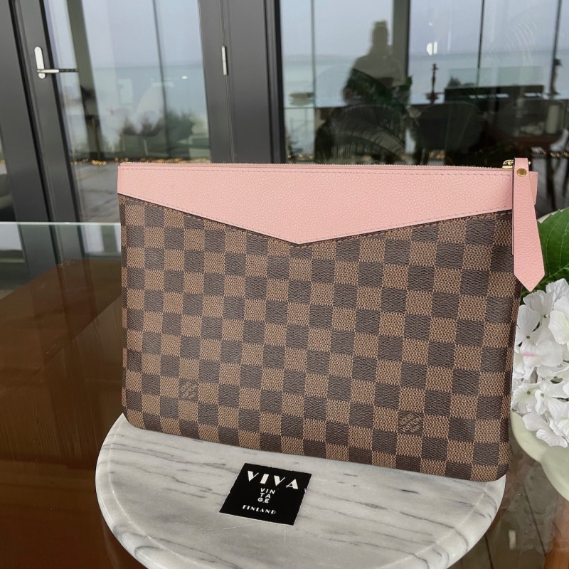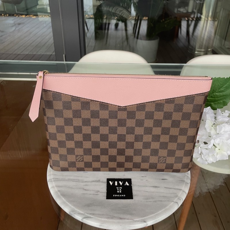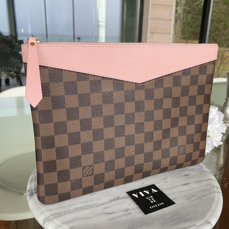 Louis Vuitton Clutch-laukku Daily Pouch in Damier Ebene canvas with Rose Ballerine leather