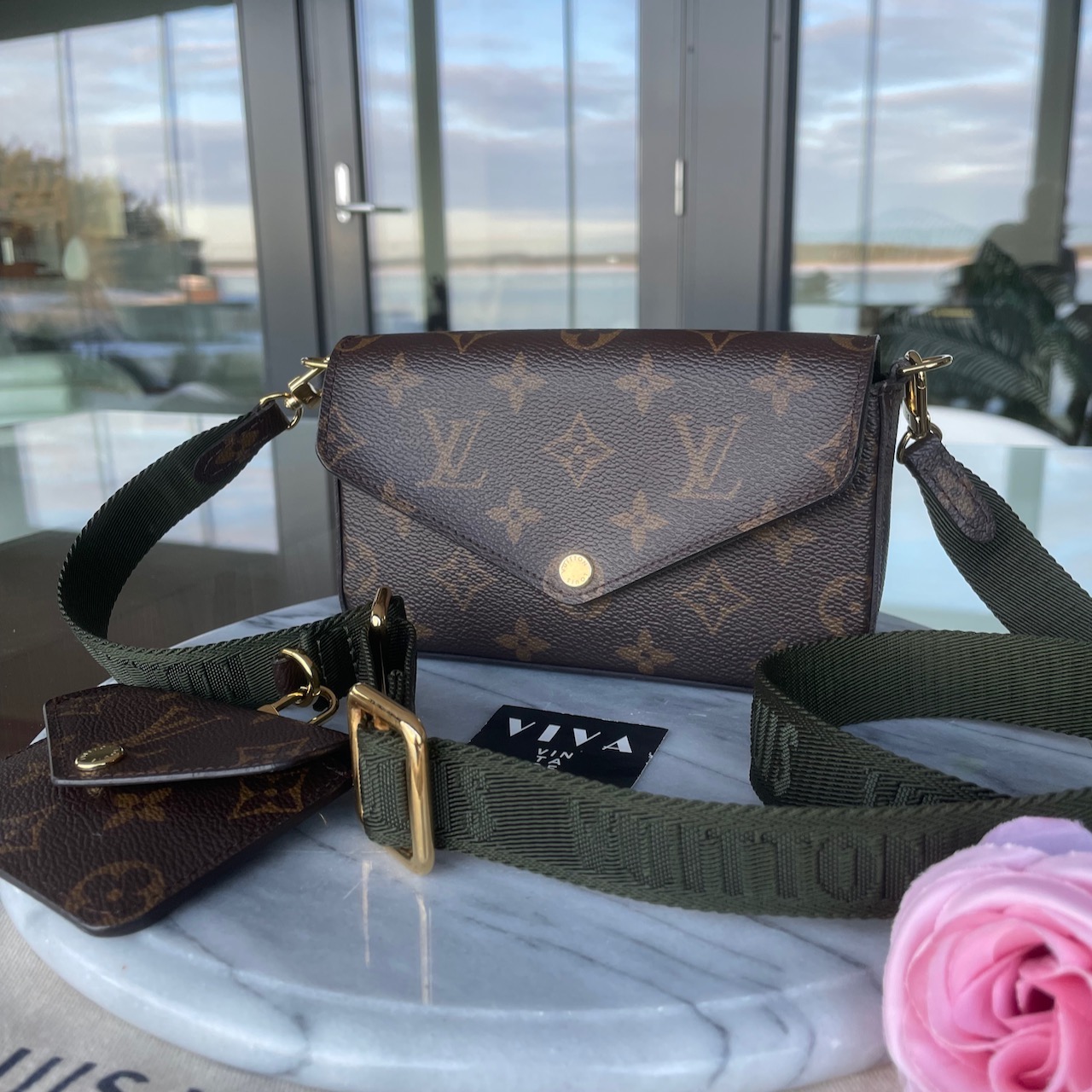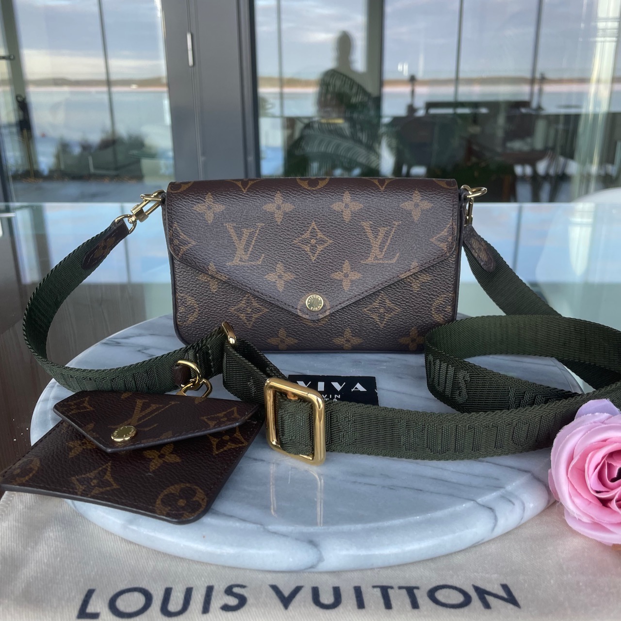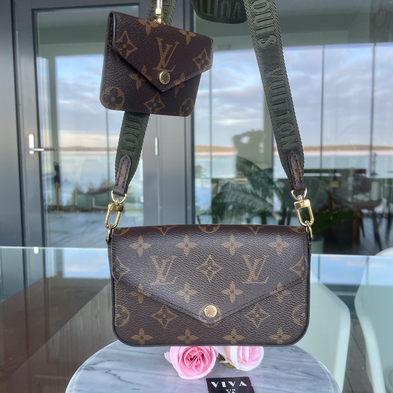 Louis Vuitton olkalaukku Felicie Strap & Go Pochette in Monogram canvas with khaki strap and lining