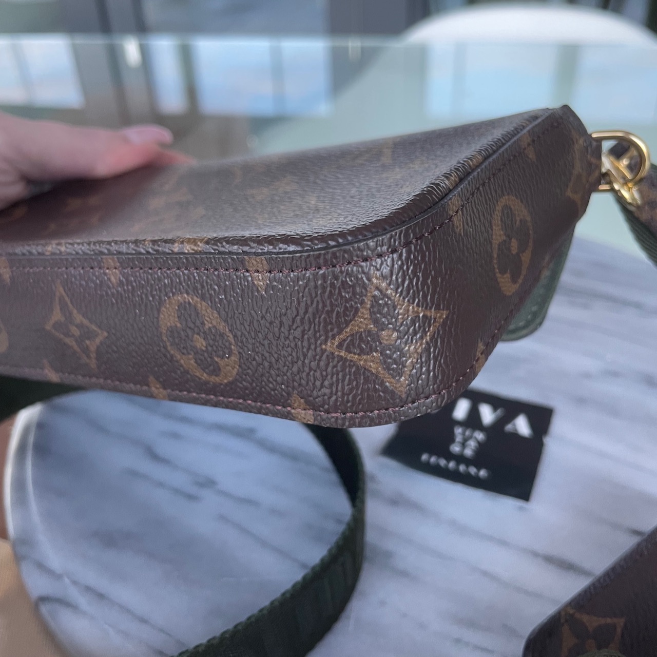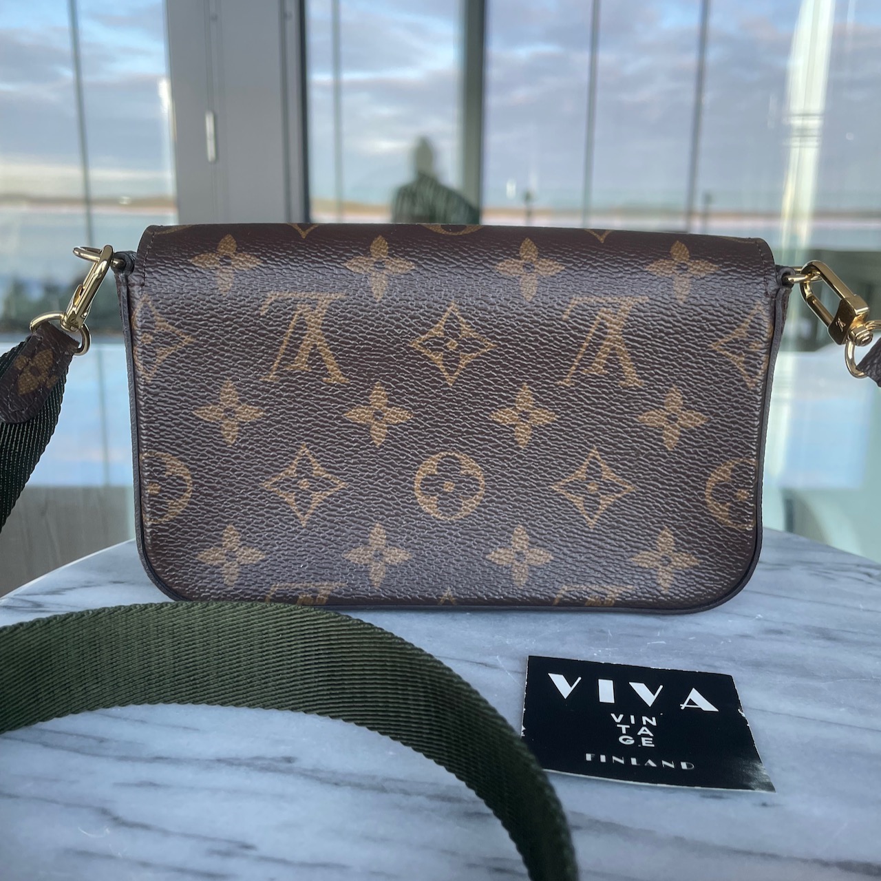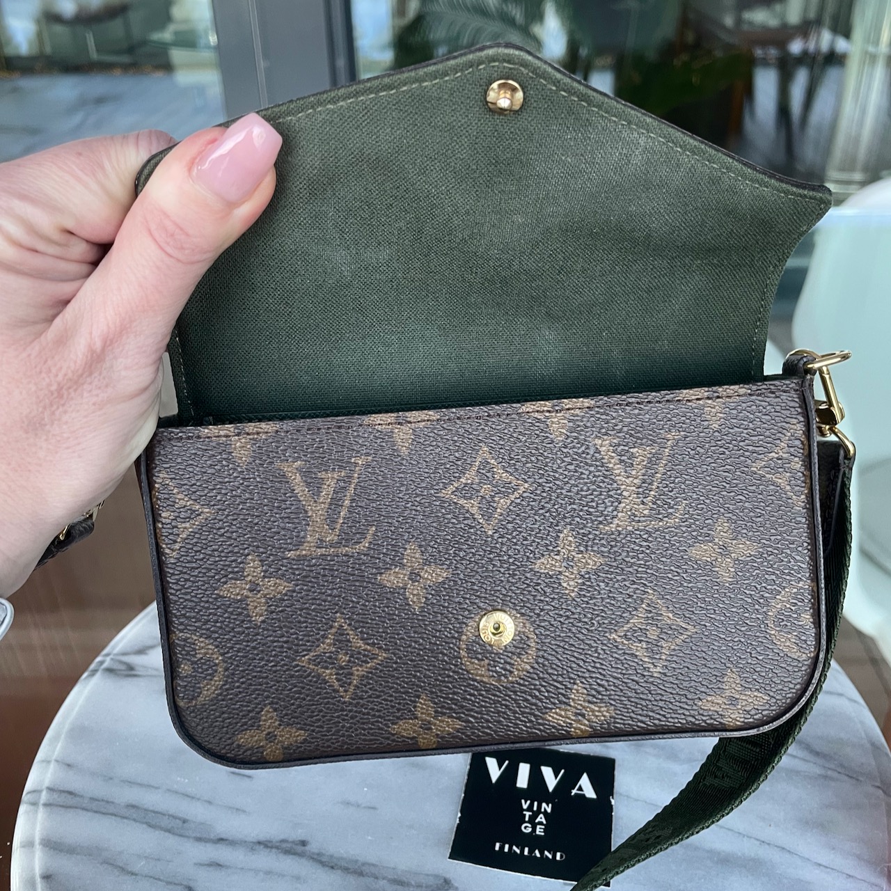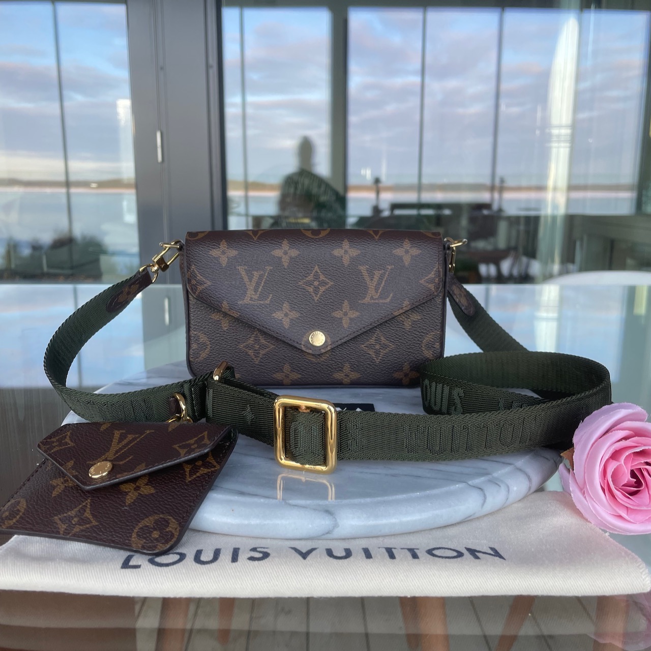 Louis Vuitton olkalaukku Felicie Strap & Go Pochette in Monogram canvas with khaki strap and lining
