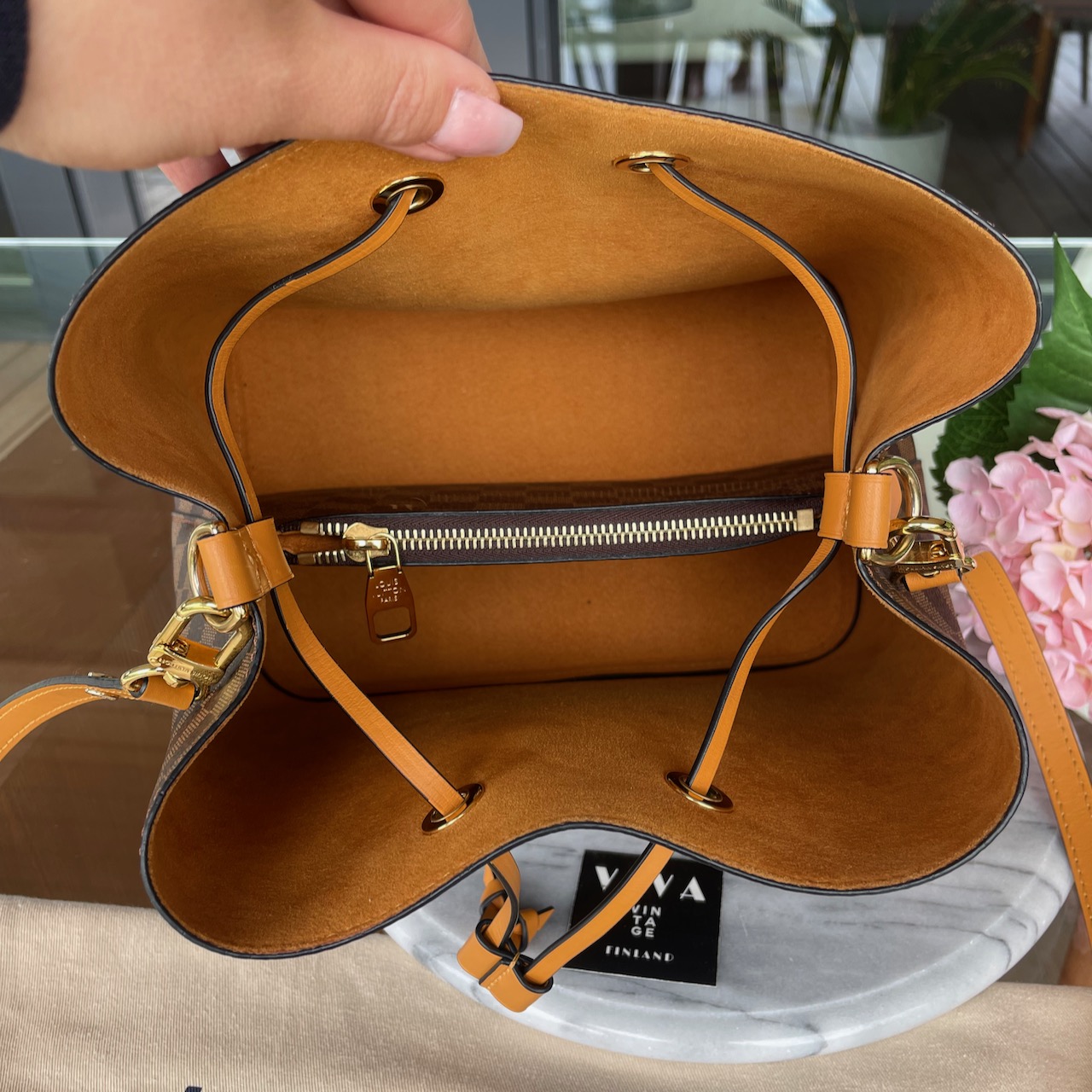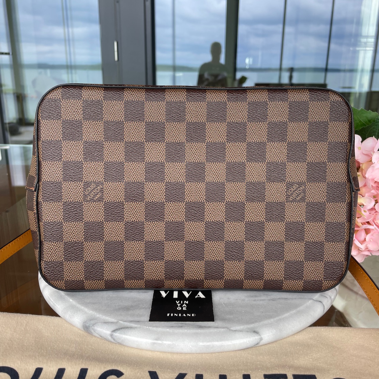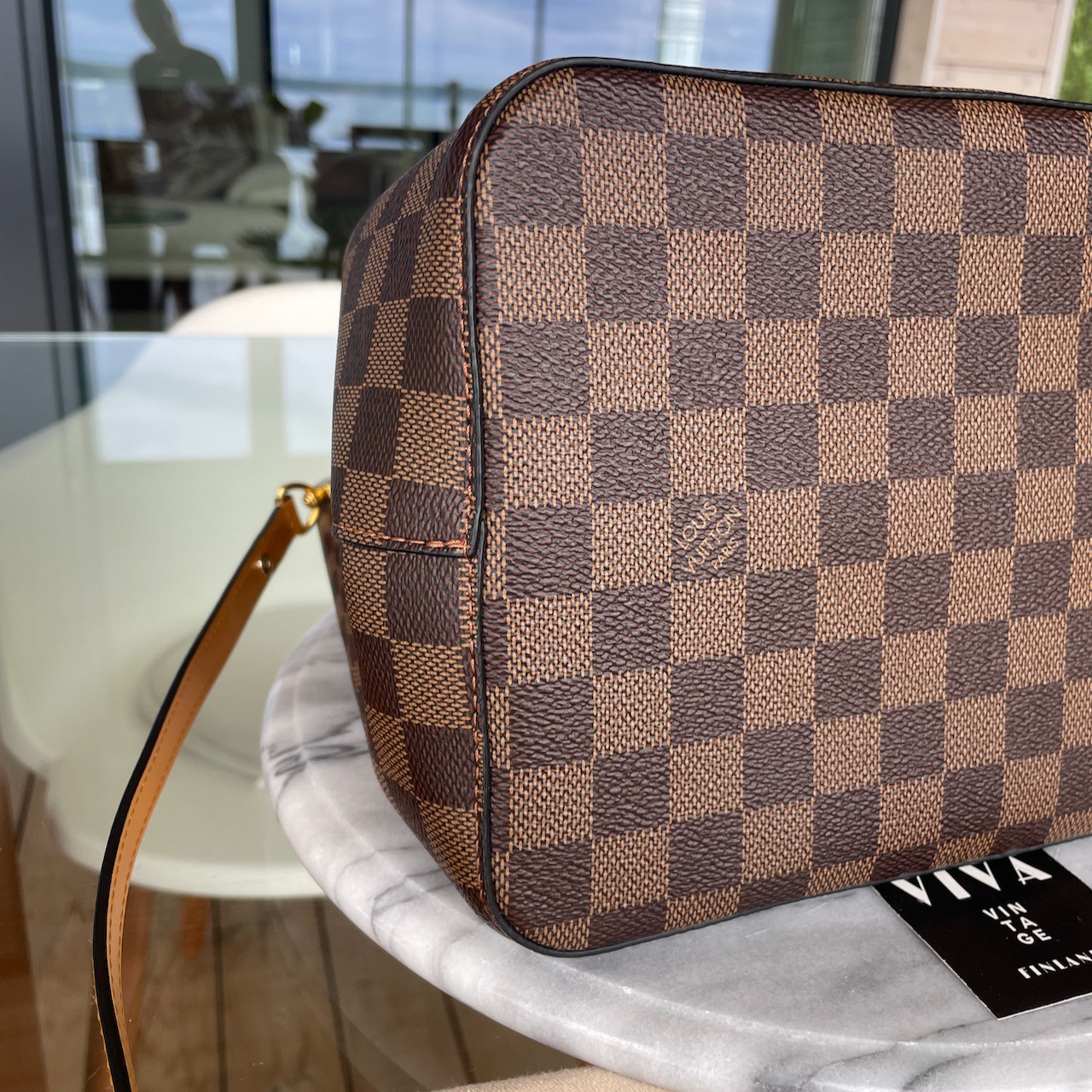 Louis Vuitton olkalaukku NéoNoé bucket bag in Damier Ebène canvas with Safran leather trim and a matching bonded lining