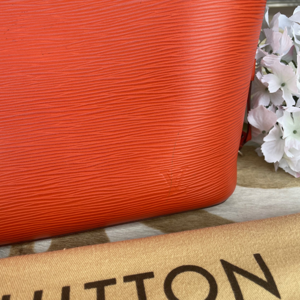 Louis Vuitton olkalaukku Neverfull MM tote in Orange Pimon Epi leather