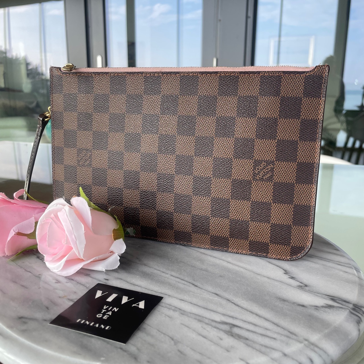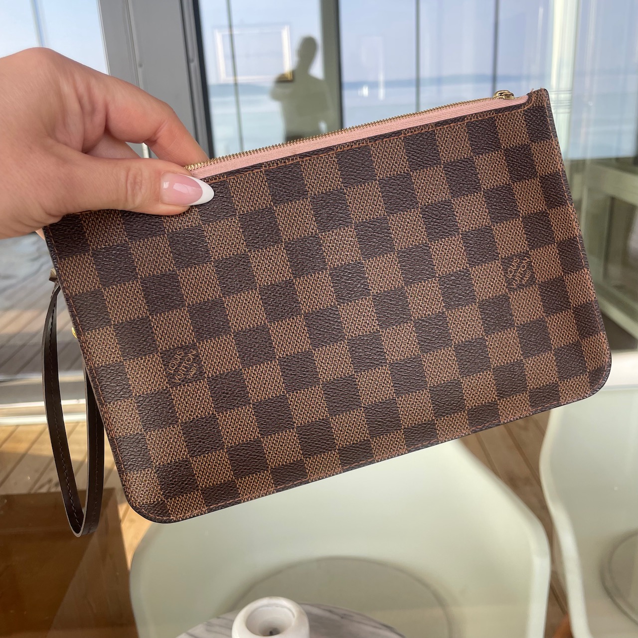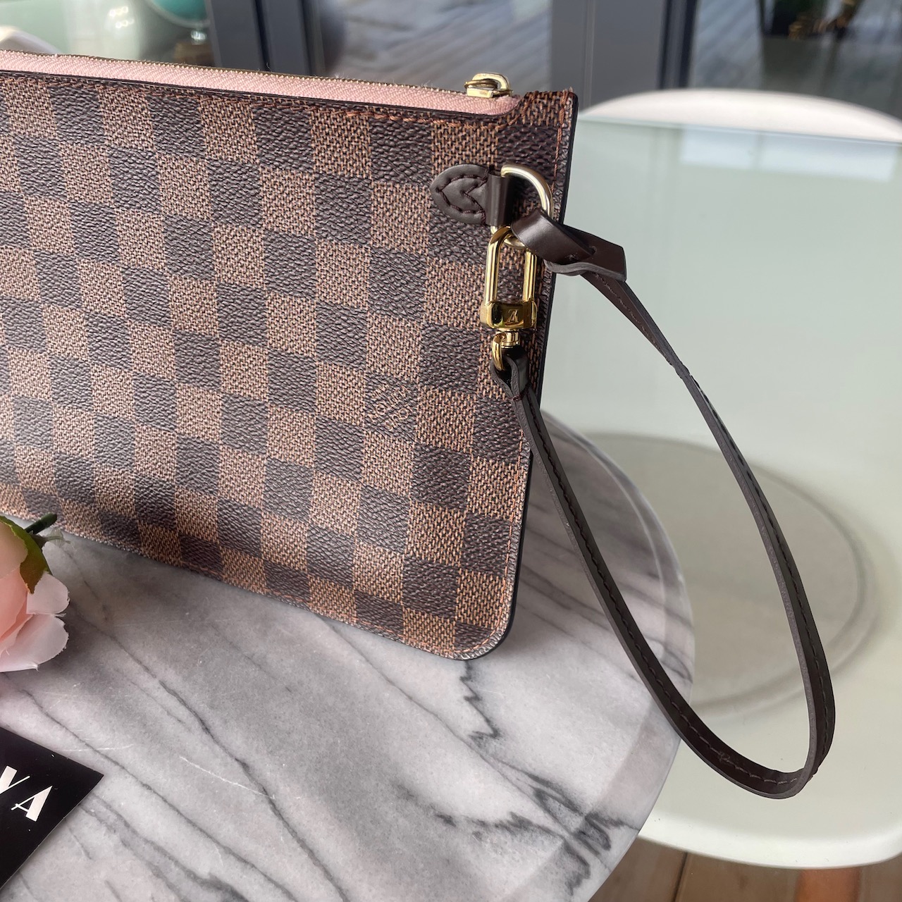 Louis Vuitton Pochette – Damier Ebène canvas with Rose Ballerine lining