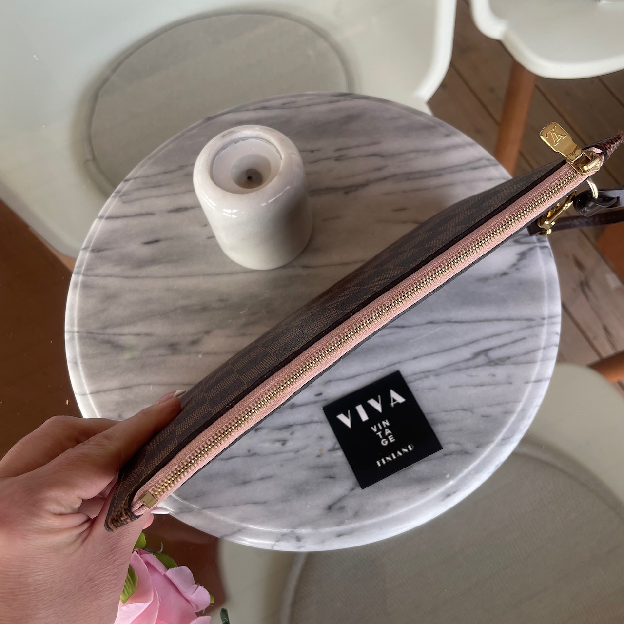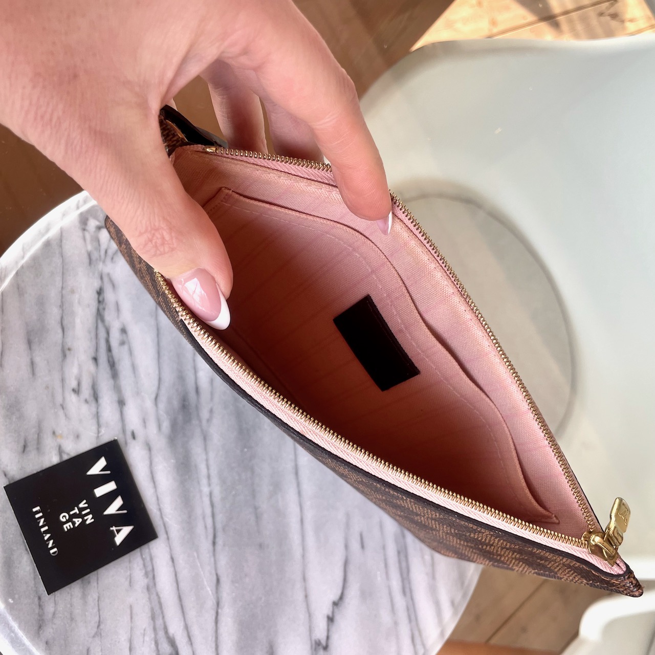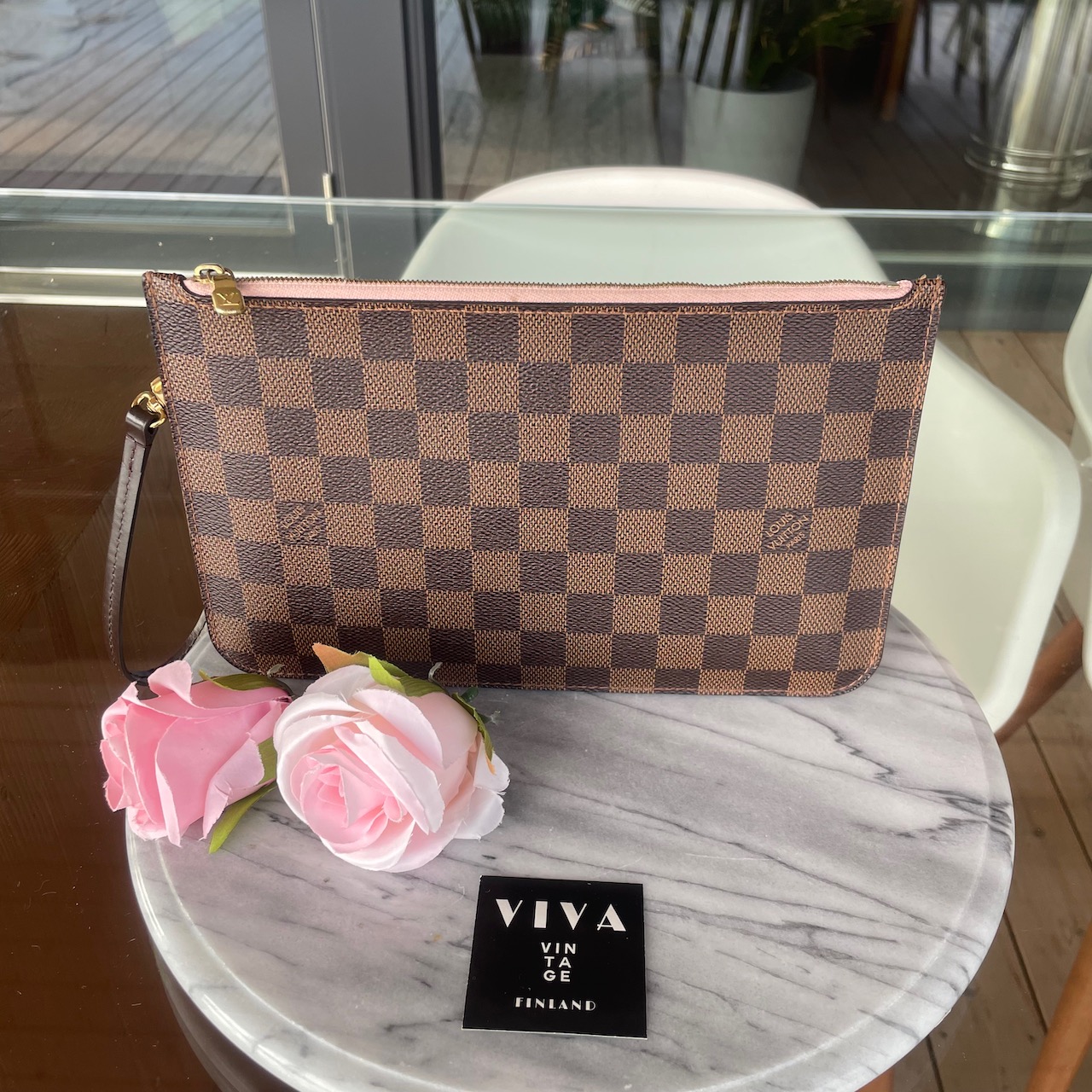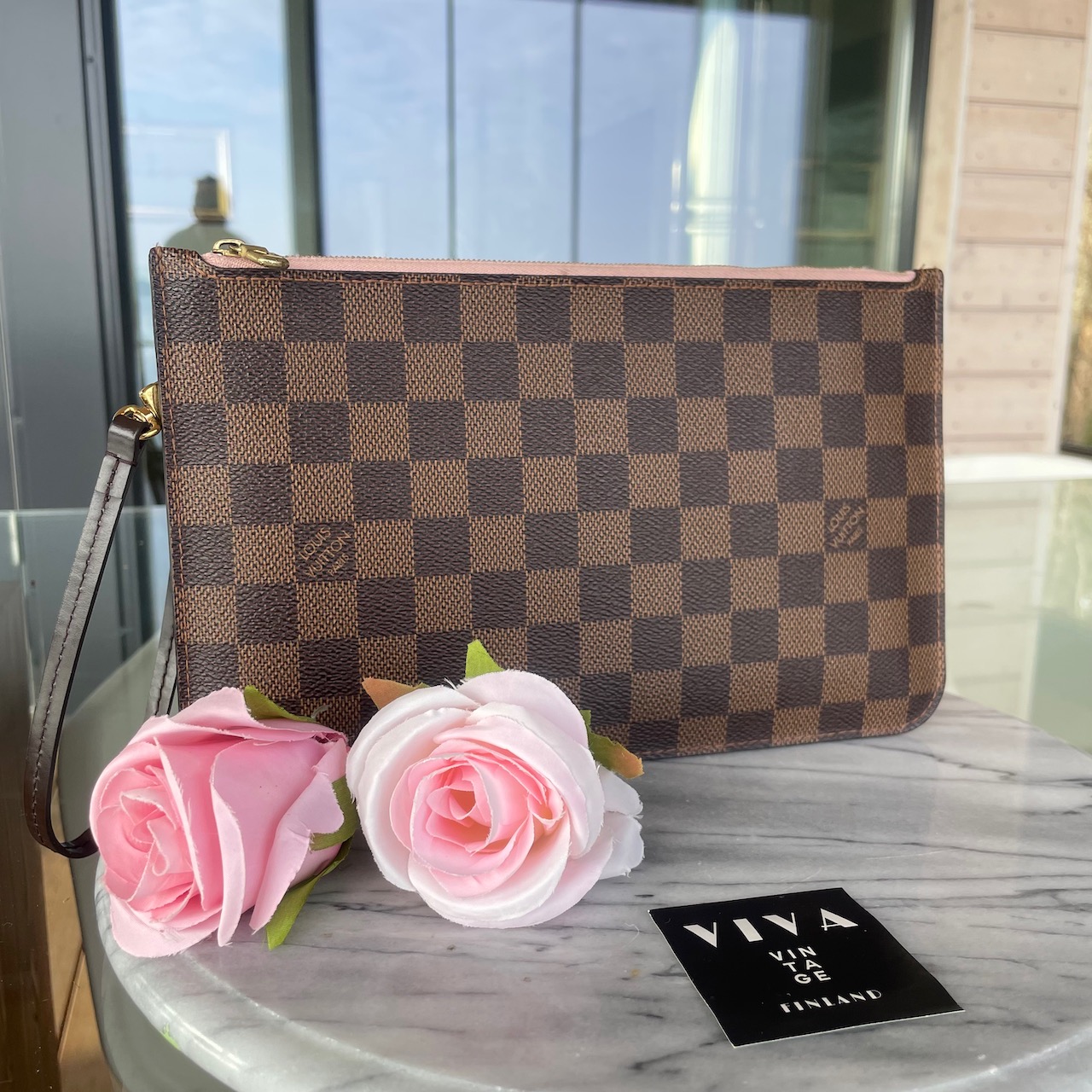 Louis Vuitton Pochette – Damier Ebène canvas with Rose Ballerine lining